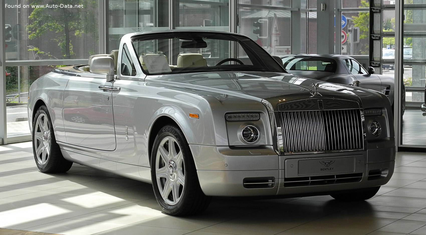 The Phantom Drophead Coupe is a four-seat cabriolet with a two-door configuration. Its design is characterized by long, flowing lines, a prominent grille, and a luxurious interior. The soft-top roof is fully automatic and can be raised or lowered in approximately 22 seconds. The interior is meticulously crafted with the finest materials, including premium leather, wood veneers, and polished metal accents. The emphasis is on providing a supremely comfortable and refined cabin experience. Features include power-adjustable seats with massage functions, a high-end audio system, and advanced climate control. Safety features, while not as emphasized as in more mainstream vehicles of the era, include ABS (Anti-lock Braking System) and a robust chassis designed for stability and occupant protection. The car’s substantial dimensions – 5612 mm (220.94 in) in length and 1987 mm (78.23 in) in width – contribute to its imposing presence and spacious interior. Trunk space is a respectable 395 liters (13.95 cu. ft.).