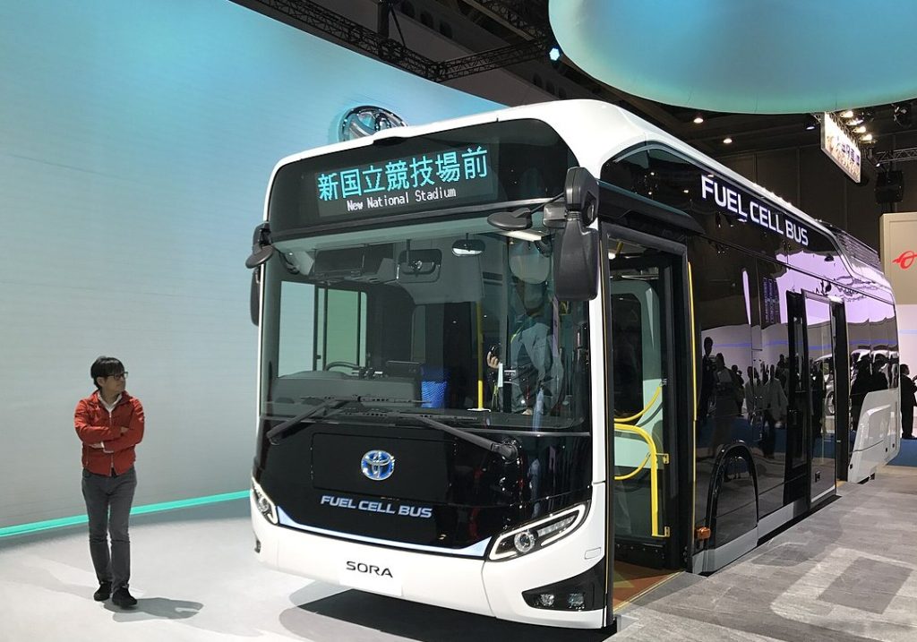 The Toyota Sora (Japanese: トヨタ SORA, Hepburn: Toyota Sora) is a transit bus with an electric motor powered by hydrogen fuel cells produced by Toyota, developed in cooperation with Hino Motors. The bus uses components originally developed for the Toyota Mirai, a mid-size fuel cell sedan. The name Sora is an abbreviation of the words Sky, Ocean, River and Air and refers to the water cycle.