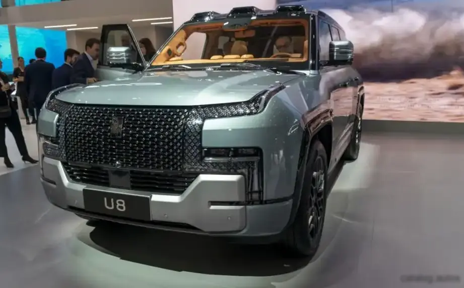 The U8 features a double wishbone suspension system both front and rear, designed to provide a comfortable ride and precise handling. The vehicle is equipped with ventilated disc brakes on all four wheels, coupled with an anti-lock braking system (ABS) for enhanced safety. Given its weight and performance capabilities, the braking system is robust and provides ample stopping power. The U8 also boasts a high ground clearance of 285 mm (11.22 in.) and impressive approach, departure, and ramp-over angles (36.5°, 35.4°, and 25.5° respectively), indicating its off-road capabilities. The vehicle’s tires are sized 275/50 R22, mounted on 22-inch wheel rims.